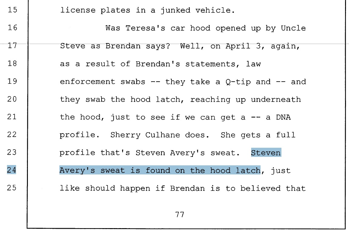 He sent you the prosecutors description of why the documentary got it wrong, not his own, fyi. Unless your friend is Ken Kratz. They never determined it was sweat, just that they found DNA under the latch. He may have done it, but you can't tell me that there was not enough reasonable doubt to convict him.