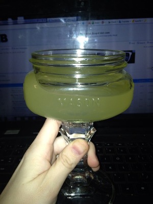 I won the margarita mix I'm drinking tonight and two redneck margarita glasses in our family Christmas grab bag. Ladies and gentlemen, I present to you a redneck margarita glass. My aunt made them herself. How ridiculous.