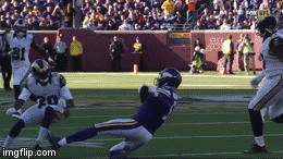 I guess we are seeing different things. It looks to me like he leads with his forearm, hits Bridgewater hard across the ball, and smashes Bridgewaters hands and the ball across his chest, and the force of the blow knocks Bridgewater back into the turf. Yes, I watched it quite a few times, which is why I posted the comment. It looks to me like Joiner's forearm / elbow never actually makes contact with Bridgewater's helmet, and the force of the helmet into the turf - not the forearm shot - is what knocks Bridgewater out. Joiner's hit clearly caused the head smash into the turf. I just thought it was interesting that it looks, to me, like he didn't actually hit him in the helmet directly. And, even if I'm seeing it wrong, and as Zach said, "his arm/elbow hits his head and slams it into the turf," my point was, it's not that blow that knocks Bridgewater out, it's the head into the turf. Meaning, the back of the helmet, not where Joiner hits him. Bridgewater's facemask is pointed right at Joiner's shoulder, so if his arm is hitting Bridgewater's head, it's up under his chin or into the facemask.