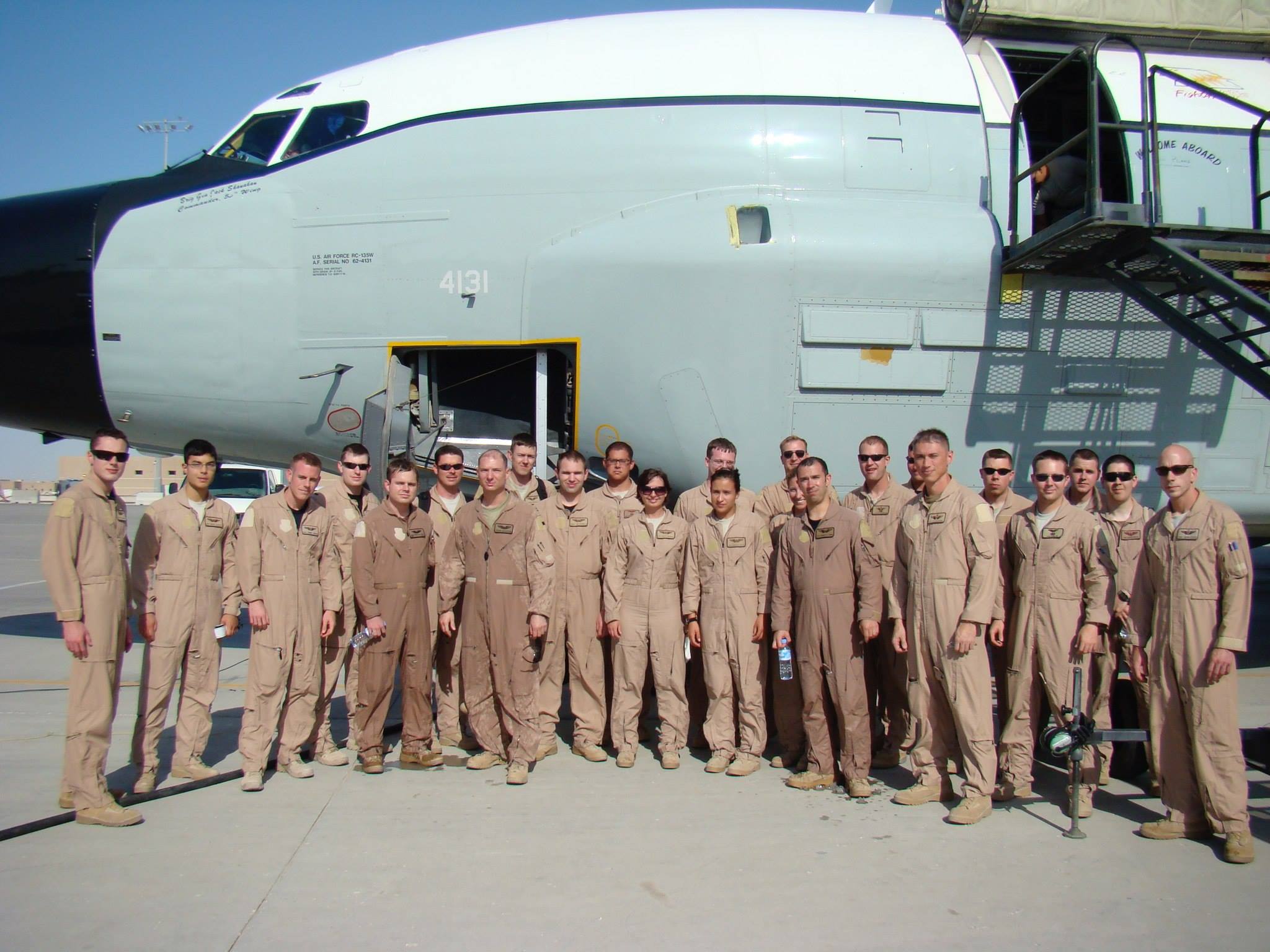 Sorry to disappoint; desert flight suits & immediately post flight...was a 'wet' down as it was my final flight so I'm one of the guys that's soaking wet...since it we were flying from an Islamic nation, it was water instead of the traditional champagne.