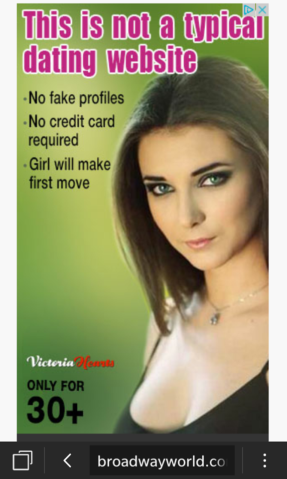 I watched a recent episode of The Flash, and they sang one of the songs from "Guys & Dolls." I was trying to figure out what the heck Sheep Eyes and Licorice Teeth are. I googled it on my phone, which took me to Broadwayworld.com and this the ad at the bottom of the page: I guess fake profiles and whether or not the girl makes the first move are the most common problems.