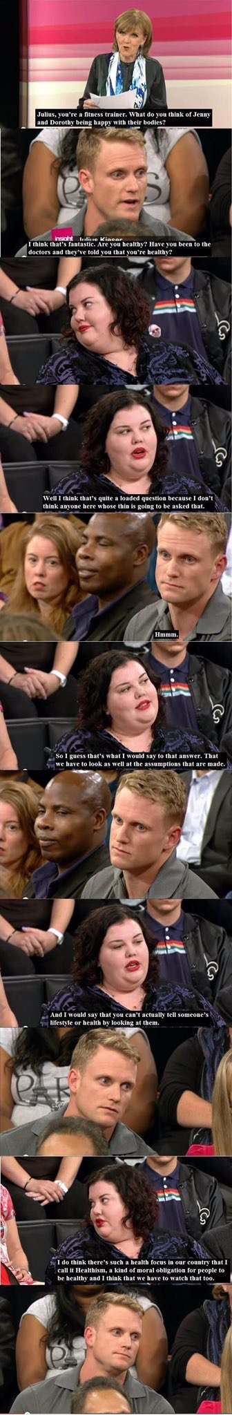 HOLY SHIT. That video. Fucking love the aggressive obese chicks claiming that both asking if they are healthy is rude and then when they claim they are perfectly healthy and wanting to know their diet and exercise is an incredible invasive question as well. Ridiculous. No way in hell that one chick eats only salads, meats, and fruits and veggies while swimming 2 miles a day and walking. Lying through their teeth.