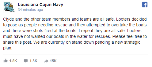 So let's see... people can't be rescued because looters are attacking the rescue boats because that gives them a more open field to steal and rob? If there is anybody who deserves to be put against a wall and shot, it's these fuckers.