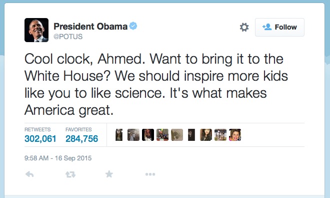 Jesus. Kid builds a bomb. Still gets invited to the White House AND fly on a plane? Wanna bet he gets the extra pat down before getting on the plane?