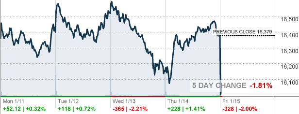 So, I go look to see how the Dow is reacting. Absolute nosedive. Like off a cliff.