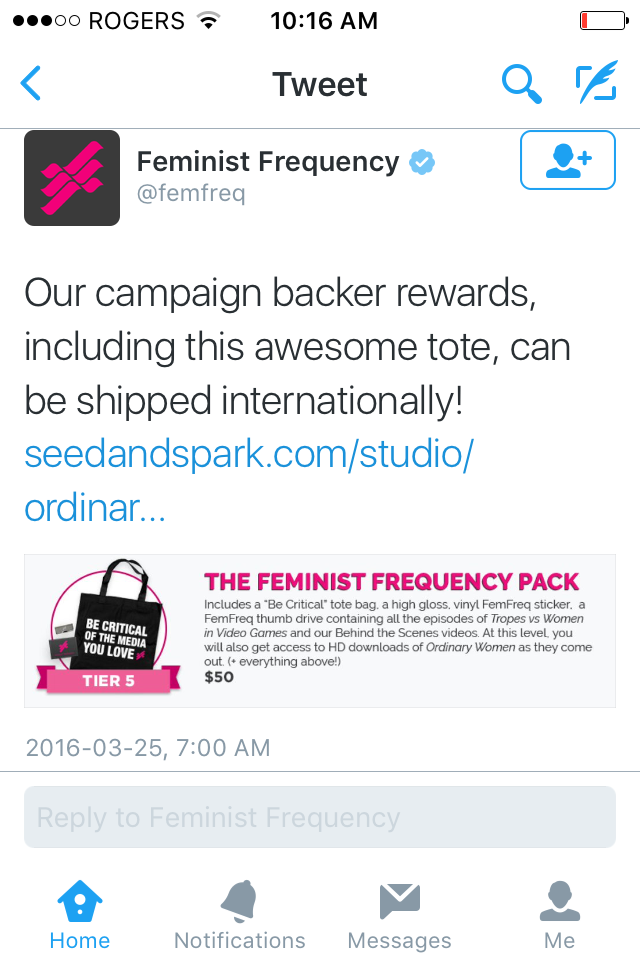 Sarkeesian could rise above the level of two-faced lying scumbag if she would just once debate a naysayer. Just ONCE answer her critics. She never has, ever, which puts her on the same level as David Muschavich: a morally bankrupt cult member who believes as long as they never answer any questions- ever- they will always be right. Sarkeesian demands the world be moulded in her opinions and nothing else, period. What the fuck does she know? She has s communications degree and calls herself a "pop culture critic" which isn't even a profession. Her fans line her pockets for literally nothing-- she doesn't do anything at all. She bitches about video games, lately about how the game called "Hitman" could be so much more fun if there wasn't killing or violence in it. She's that stupid along with her dickless puppeteer Jon Mcintosh. She's a life-ruiner who hates men and uses women. She's lost any sympathy privileges. Seriously, how desperate is she right now?