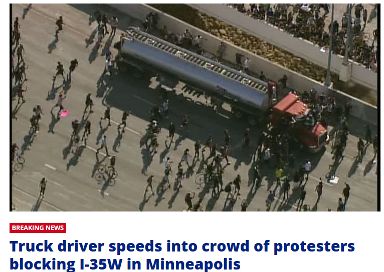 Fox just reported that a semi may have plowed into protestors in Minneapolis. Nothing on other channels or web sites yet. EDIT: Found it