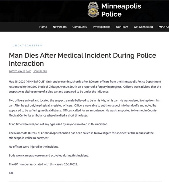 Never forget, this is how the Minneapolis police initially reported a murder: