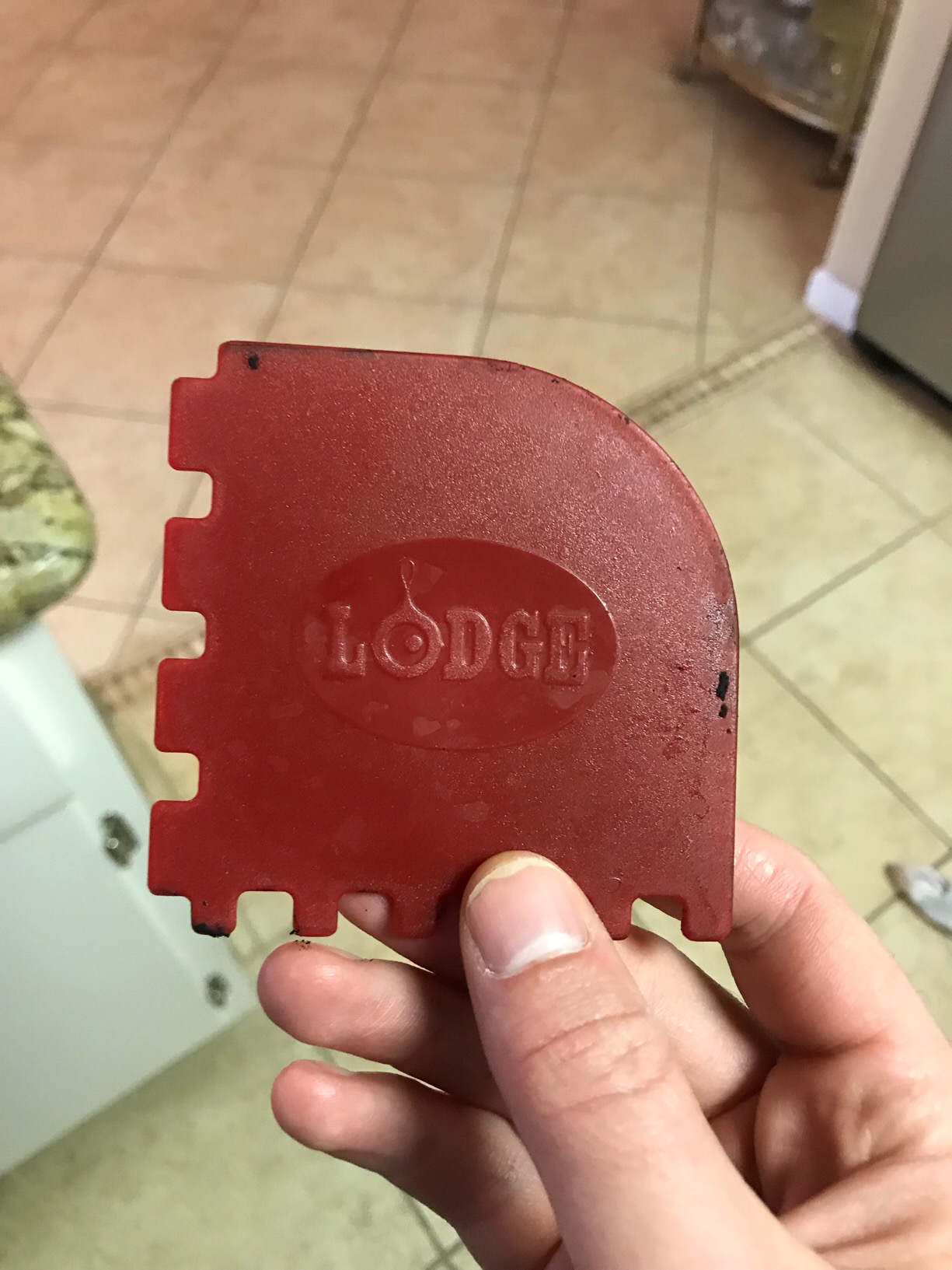 Bed Bath and Beyond also sells a nylon scraper for literally $0.99 that's amazing at scraping gunk off pans. At that price it's worth it for cleaning alone, but it's also a really good dough scraper with a rounded corner for working in bowls if you're a bread baker.