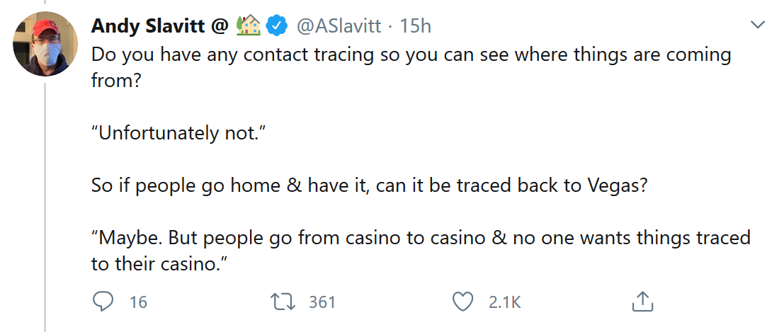 Apparently Vegas is fine with infecting the country. https://twitter.com/ASlavitt/status/1289756365506797568
