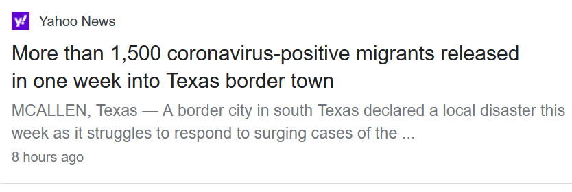 If you read all the articles about the story, it basically says the migrants are being quarantined in some of the border towns and a lot of them have COVID. They are not just "released" into the public, they are mostly being kept in a few different facilities before they are either being shipped back over the border or allowed to leave after they pass quarantine. This process is no different then what's been going on since the start of COVID, the only difference is the numbers have grown as the border towns are starting to us funds to vaccinate people crossing the border.