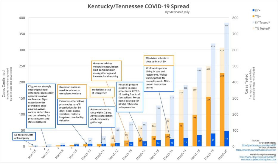 While I'm not arguing that staying at home is the only real effective measure, that graph is quite misleading. Tennessee has a population of 6.77 million. Nashville and Memphis are both well above 600k people. Kentucky is at 4.47 million and only Louisville is barely above 600k people. Apples and oranges. You can make numbers appear to say anything.