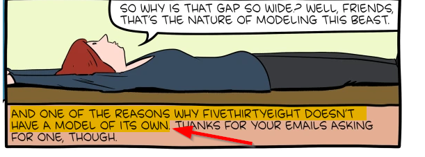 So you didn't read the entire comic that explains why a model doesn't exist, then say that the model that doesn't exist is putting out results that don't match up with reality. Then you make predictions based on nothing more than how not worried you are. You do you, man.