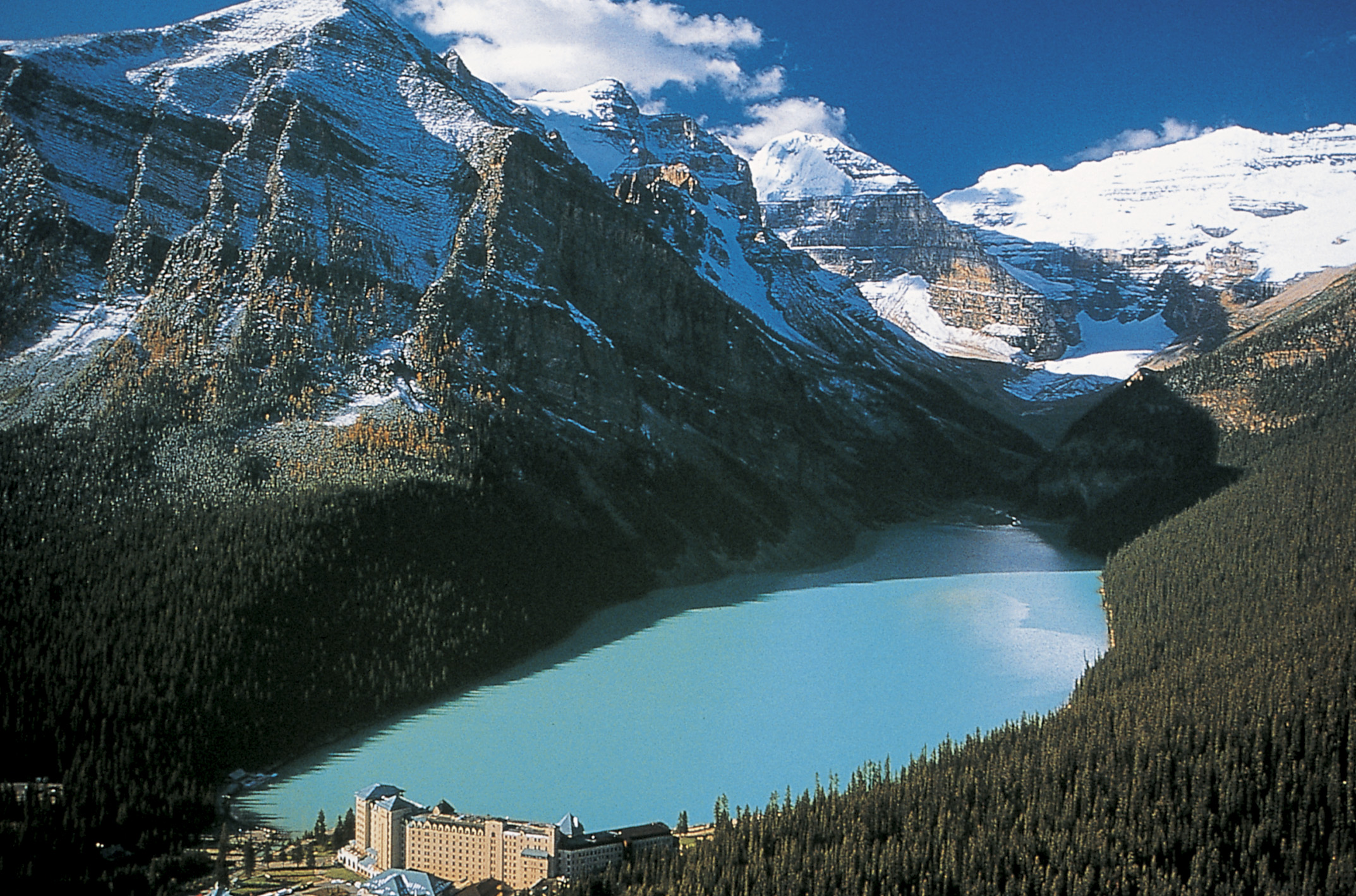 Like I said Juice, Lake Louise is a must. The top-notch hotel on the shore is the Chateau Lake Louise, and the rock flour causes the entire Lake Of The Little Fishes to shimmer with a ghostly turquoise illumination: