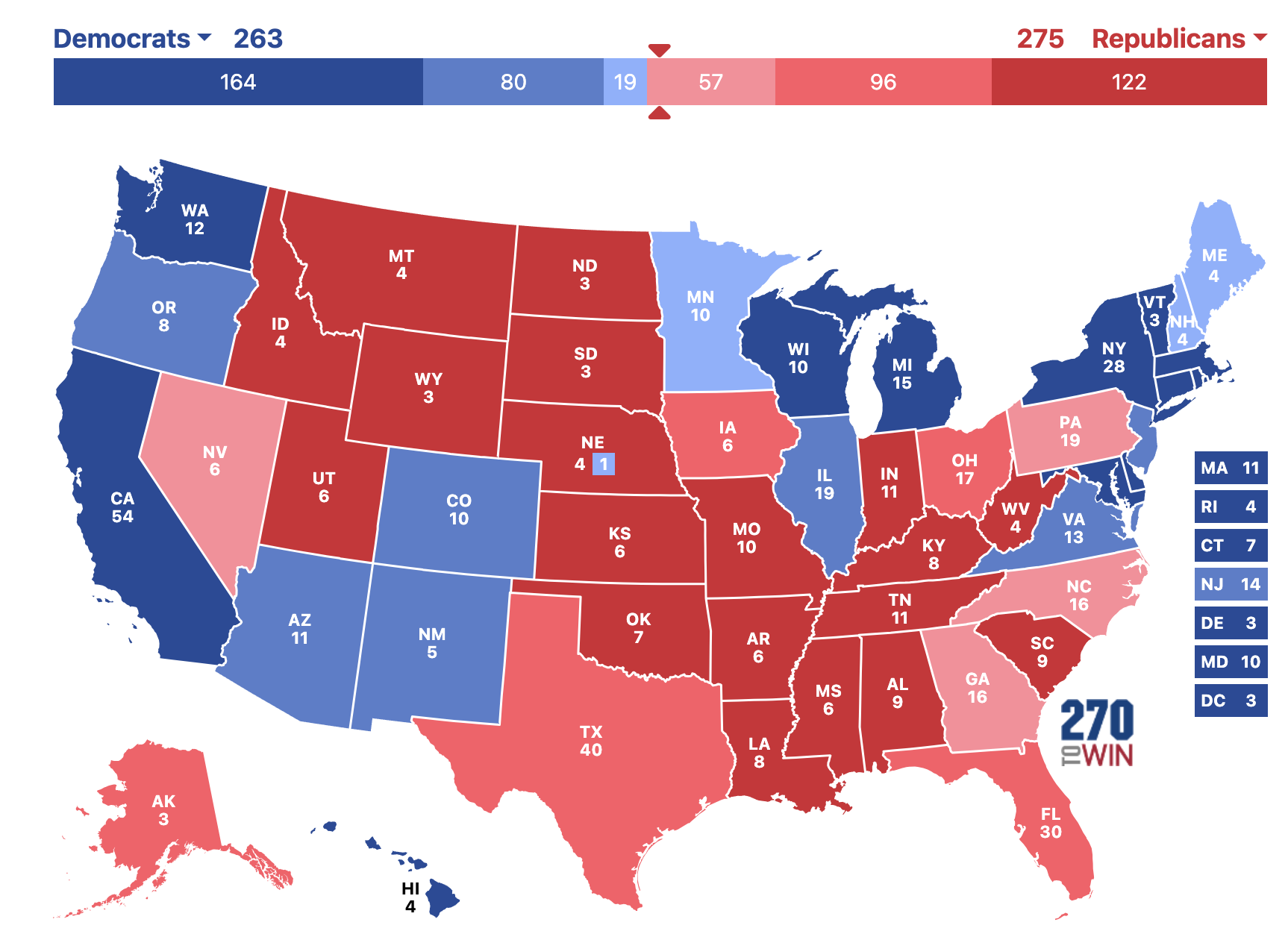 I think that map is Trump's best case scenario. Right now I have the map looking like this: I think North Carolina is swinging, and its happening way under the radar. There have been recent polls with Harris up 1 or 2 there. They're sitting on almost as many electoral votes as Pennsylvania is. Harris expanding the map is terrible news for Trump, as he'll have to defend far more ground than he's prepared to right now.