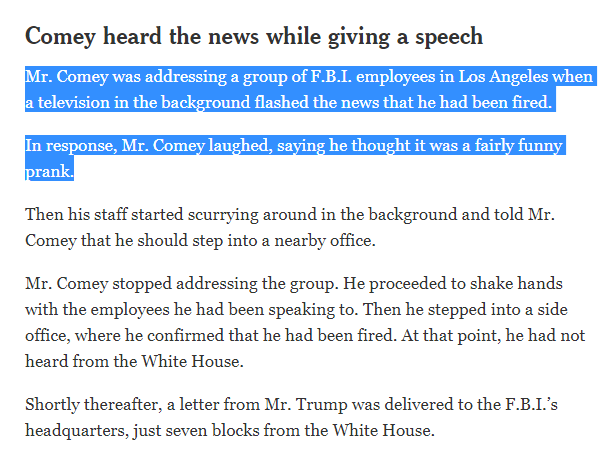 But really, he's being shit-canned for the one piece of work he did that helped Trump get elected by causing a ton of chaos around Hillary and her emails?