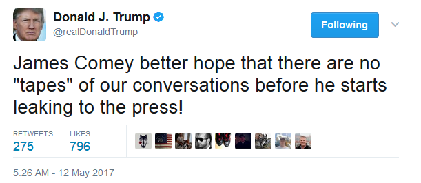 Jesus Christ. So now he may have recorded his conversation with the former FBI Director? Its almost like hes deliberately trying to get impeached.