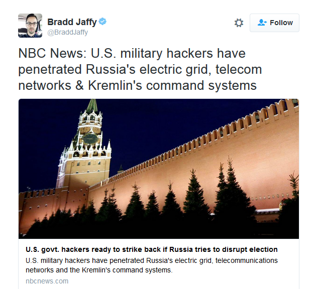 I'd be surprised if Hillary doesn't order that done as her first official act as a shot across Russia's bow for fucking with our election.