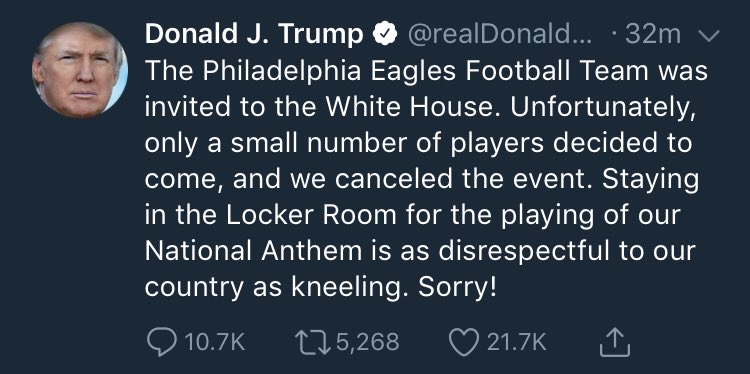 So apparently no Eagle kneeled for the anthem during the 2017 season in the first place. Amazing.