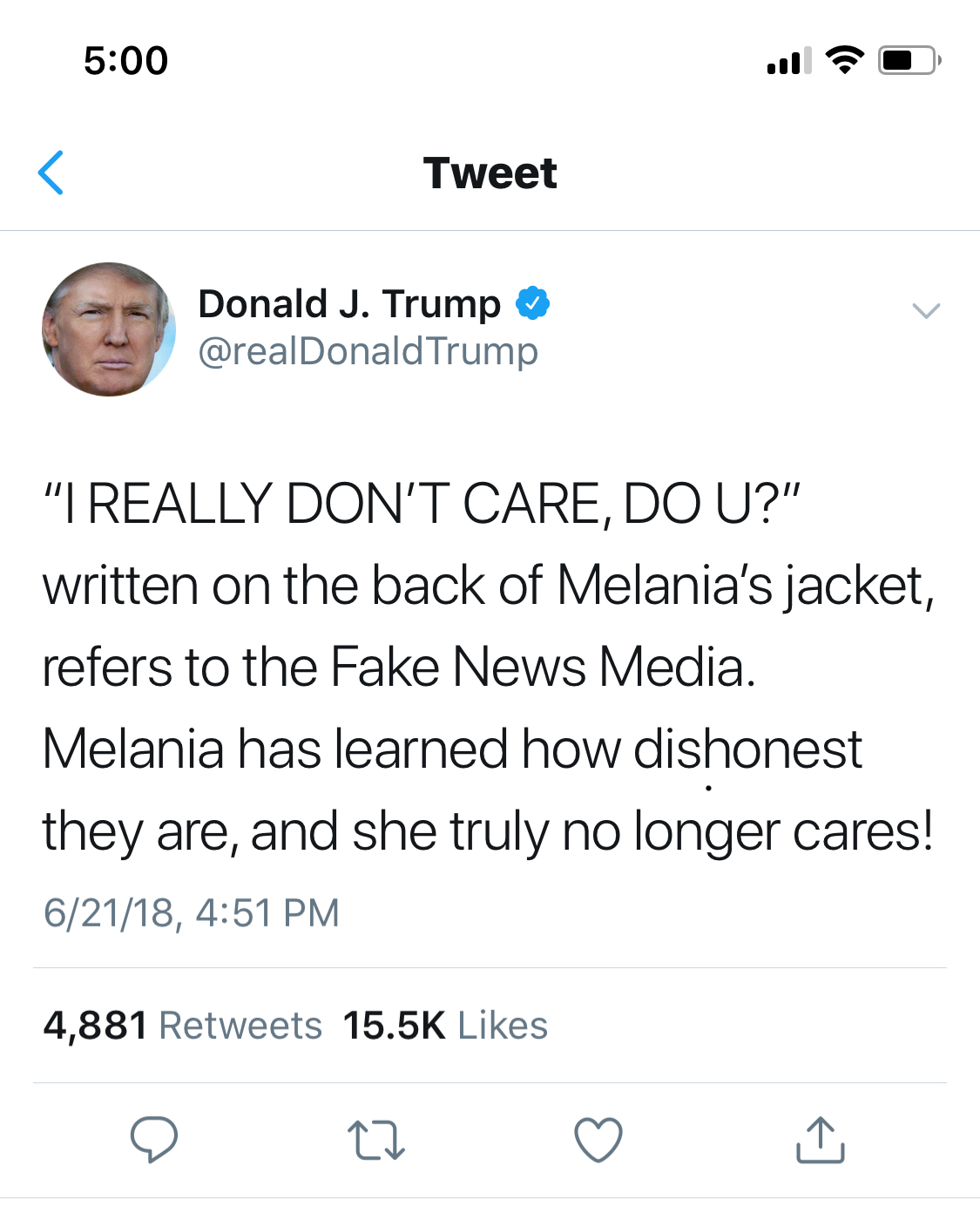I have no doubt that she wore it without it meaning anything other than “hot new trendy clothes” and then he saw it and appropriated it to be about him and his “fake news” cause.