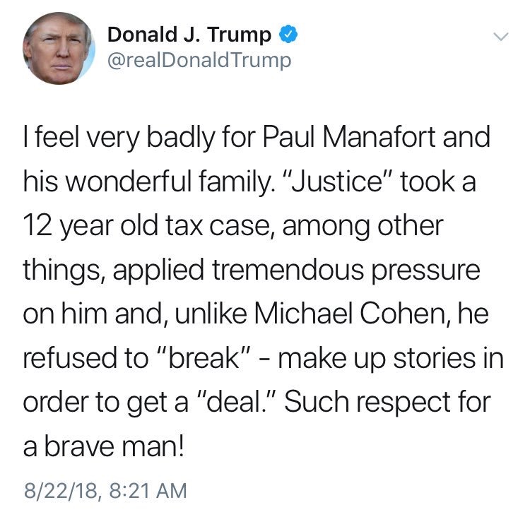 One interesting part of the agreement is that Manafort waived having his attorneys present at his proffer sessions. Supposedly his lawyers had been in contact with Trumps team so far. I think he was trying for a pardon. Getting that pardon opens him up to state charges which Trump cannot give a pardon to.