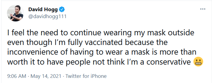 I heard a month or so ago that the mask will become the MAGA hat of the Democratic party. Sure looking that way.