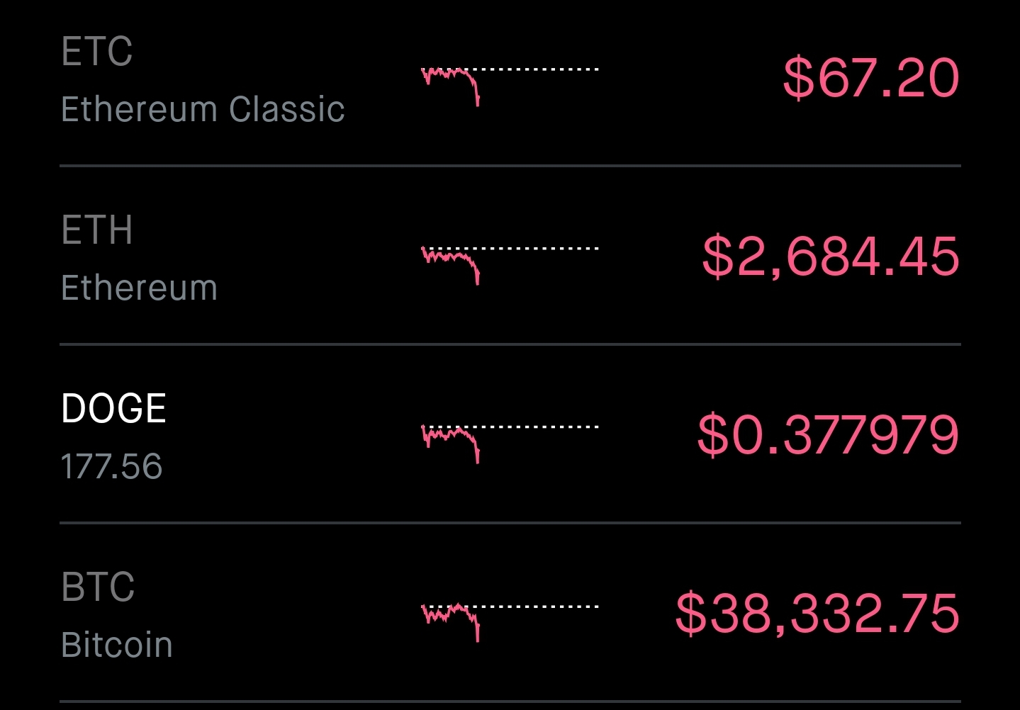 Y'all got any more of them cryptos? I admit, I just suck at this day trading game. Started off with over 1000 dogecoins, then thru various "tactical" sales and repurchases I'm down to 170. Should've just stayed put. I haven't actually LOST money on my total investment, at least not yet. But it could've been more. Screenshot from 0743 today.