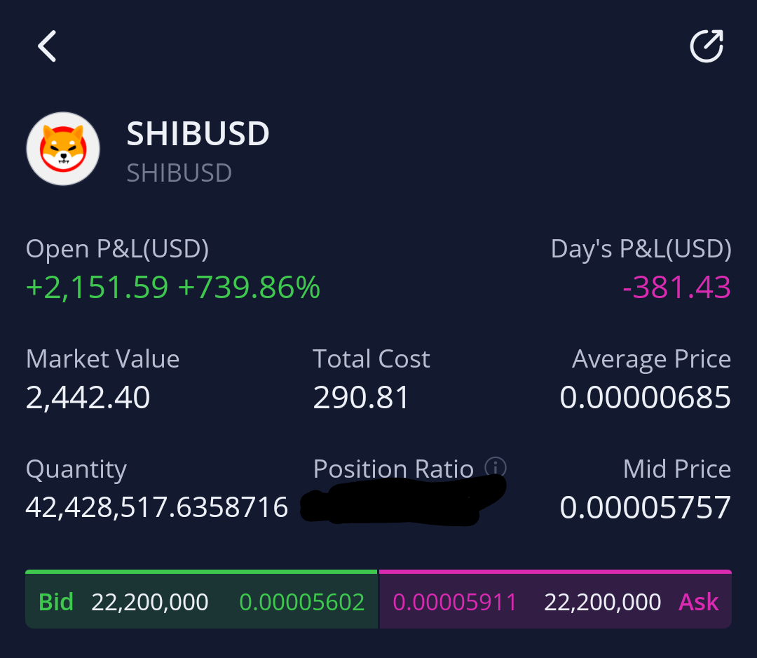 My sell order is half at a penny, half at .10. I have looked at it a couple times here and there, but I'm far too experienced in small cap biotech stock plays to watch day to day swings. *Edit - I did hear that guy with the 5bn worth of Shibu who it appeared lost his wallet or died has started to unload his position. I think he's been selling 10million dollars at a time.