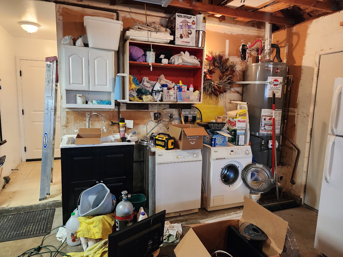 Since the car was out of the garage for a bit, I took the advantage of the space and threw up some IKEA cabinets. So much countertop space now. Some before and after pics.