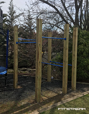She said she wanted them in a line to fit next to their fence. For a normal human, I'd say 4x4 is probably good. But, she's married to Shaq and he's going to be swinging on it, 10'+ off the ground on unsupported posts.