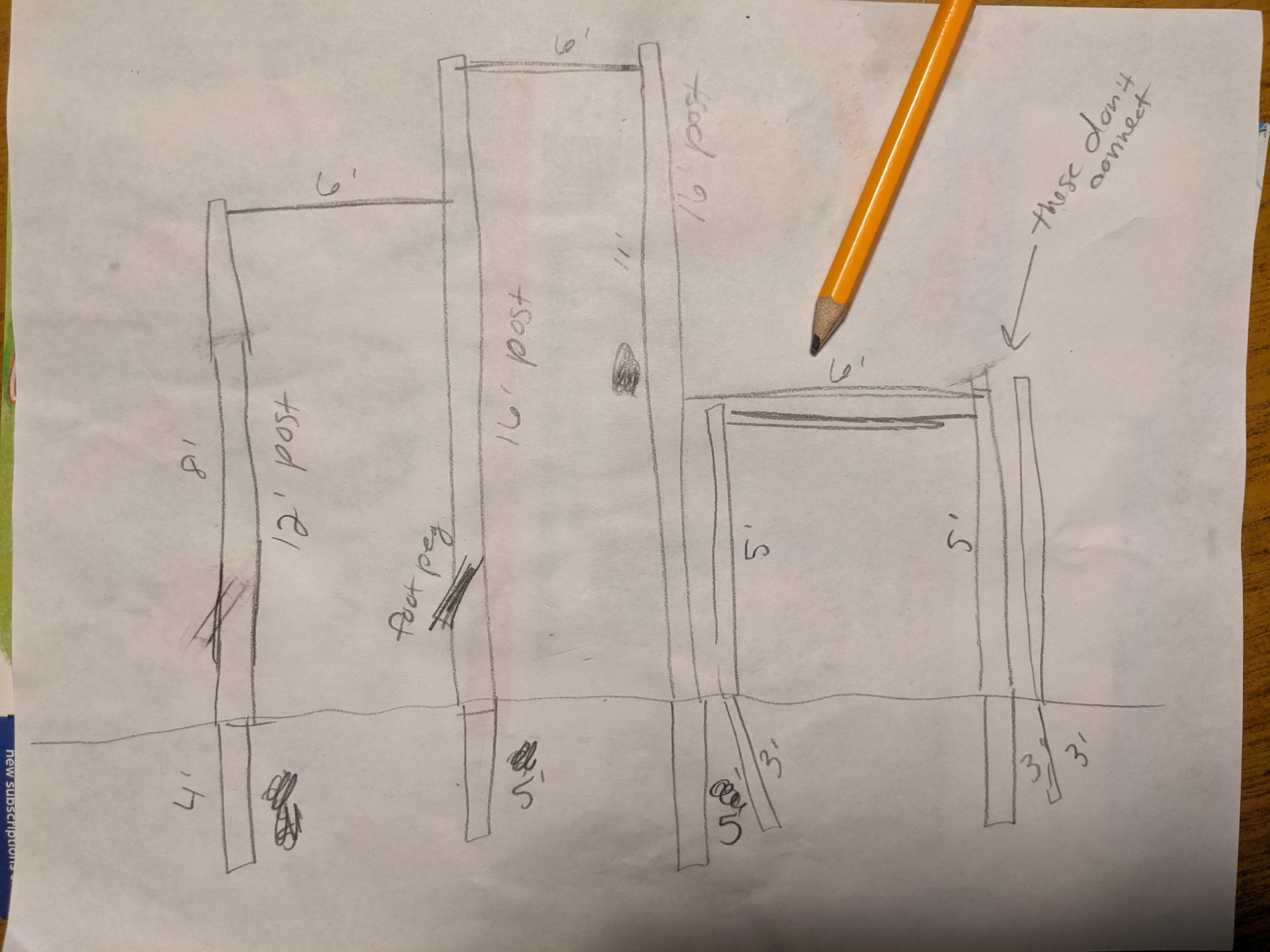 I'd probably want 6x6 on the tall ones, that is a lot of post sticking out of the ground. Without perpendicular supports they could warp worse than you might imagine. You'll be lucky to find a straight 16' long 4x4 post. Make sure the contractor doesn't skimp on the 5' and just cut the top of the post off. That is a deep hole. The auger I have for fence posts, and all the ones we used on the farm, would dig 3'. Which is just right for a 6' fence post. I'd need some kind of extension or a longer bit to get to 5'. If they show up with a one man auger and an 8"x36" bit, the hole won't be big enough and the finished product won't be strong enough.