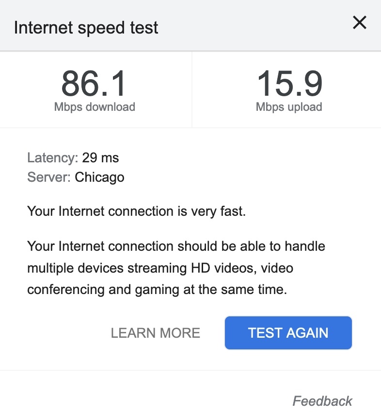 Yeah, that was the lowest speed/throughput, but the best ping time. I was seeing upwards of twice that throughput at about 45ms ping.