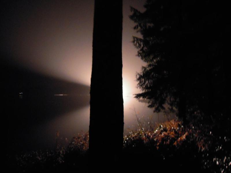 Last week I was working in my home-office and I heard an air plane flying pretty low over my lake. And it kept getting lower, and lower, and lower. Engine was down, maybe idling, but this was NOT normal. I ran out just in time to see the plane go full-power at about 25' off the water, and climb out. I was relieved, and went back inside to go to work. And then it happened again. And again. And again. Turns out that they were filming a movie from the beach across the way, so it was all good. I even managed to snag a pic of it on its last run. That night I wasn't feeling well, so I fell asleep on the couch watching some TV. Now, living out in the middle of nowhere, it gets fucking DARK when the sun goes down. So imagine my surprise when, at 11pm, my living room lights up like I'm about to be abducted by aliens. It freaked the hell out of me, and I was more than a little disoriented for a few minutes. Eventually I realized that they must still be filming the movie on the lake, so I went down to my dock to check it out. They had a fake fuselage hanging from a crane, and were shaking it up, down, and around, all while the entire lake was lit up like crazy. The pics don't do it justice, nor do they capture some producer type yelling across the lake at me to stop pissing off my dock, and could I please get out of the background?