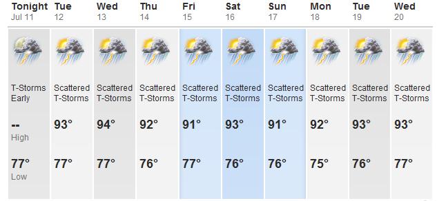 Rave: the weather sucks, but it would suck worse if it didn't rain every single day of the month. Heat index of 105. Yay Alabama....
