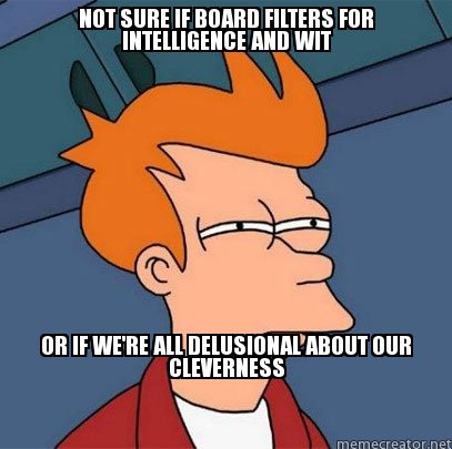 This feels like all the games I would play with myself when I couldn't get a date to save my life in HS. Pros: -Smart, quick and witty -Well read, well spoken, almost an encyclopedic knowledge of random minutia. I will be able to talk about something with almost anyone -In pretty damn good shape after developing an almost obsessive dedication to working out and eating better -With the point above, I take care of myself. A lack of hygiene is something I'll never have -Incredibly loyal, almost to a fault -Good in bed, always giving, its something I always am willing to get better at -Doggedly determined to give myself and my future wife the best life possible. -Grew up with 3 sisters and am very close with my Mom, I can deal with alot of female nonsense. -Have a great family who you will love, if I sense you won't, you'll never get to the stage of meeting them. Cons: -I've struggled with relationship related boredom in the past. -Despite my best intentions, my relationship experience is limited and still developing. -I'm good friends with two of my ex-gfs, who I've not been involved with for years, and thats not gonna change. -I'm a terribly uncooperative sleeper. -I hate cheesy relationships and refuse to be part of extremely demonstrative lovely couples. -My sports allegiances are strong and you're gonna have to get used to them. -My dad's side of the family are judgmental asshats who will be inclined to dislike you cause its just how they are.