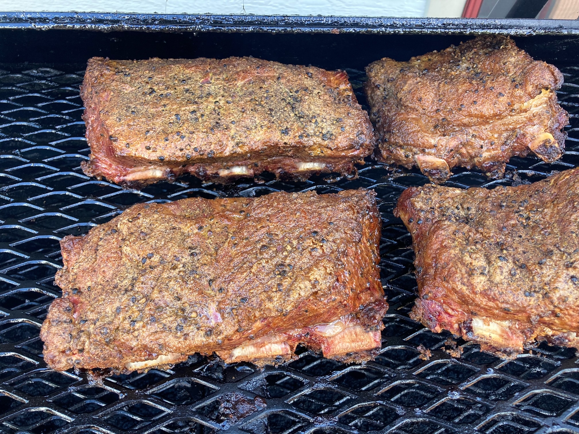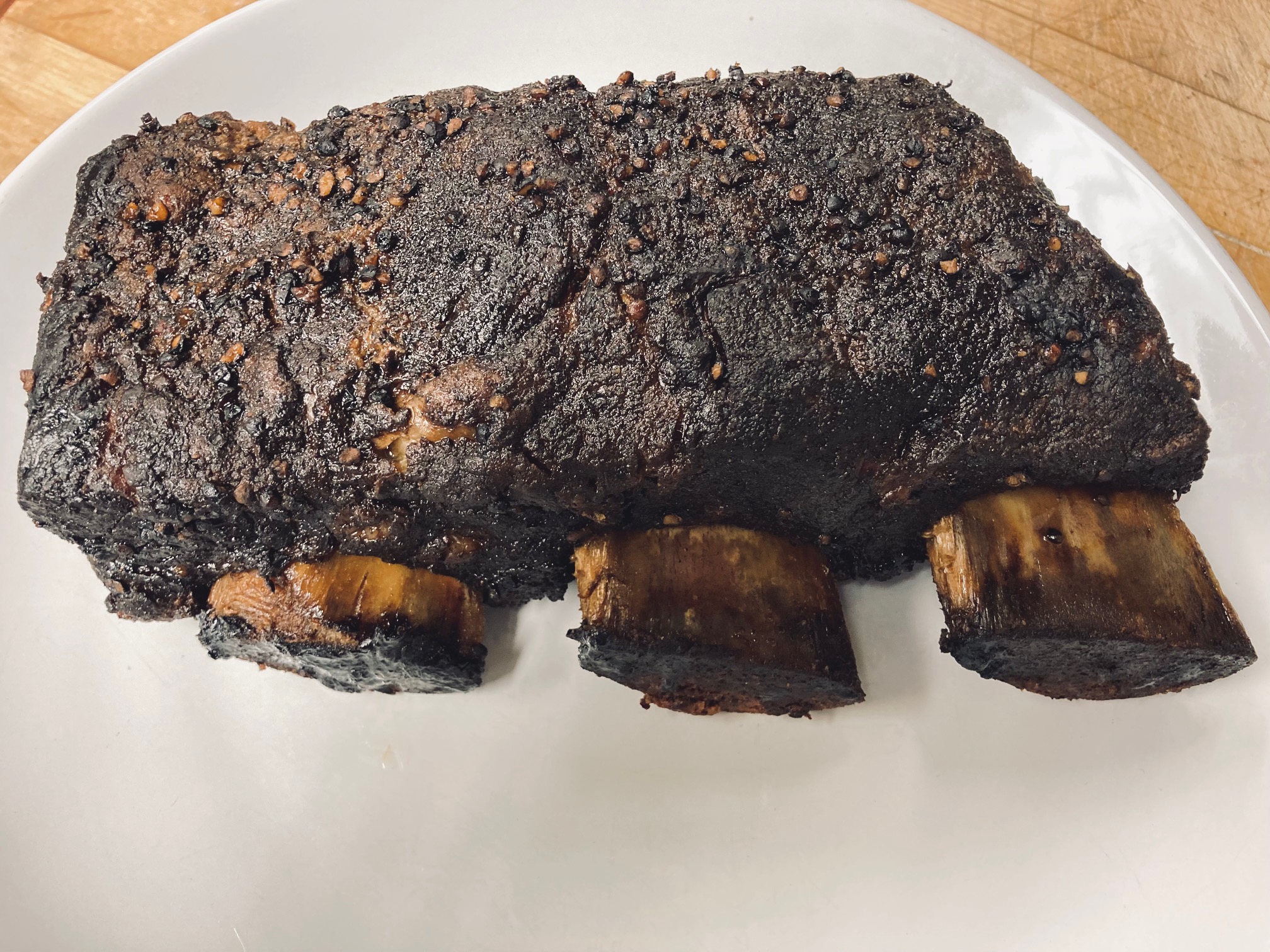 One of the short rib sections off the smoker. 8hrs on @250, 2 hours wrapped on @275, 2 hours wrapped and rested in a hot box. I wanted to video the jiggle, but it wasn't coming out great.