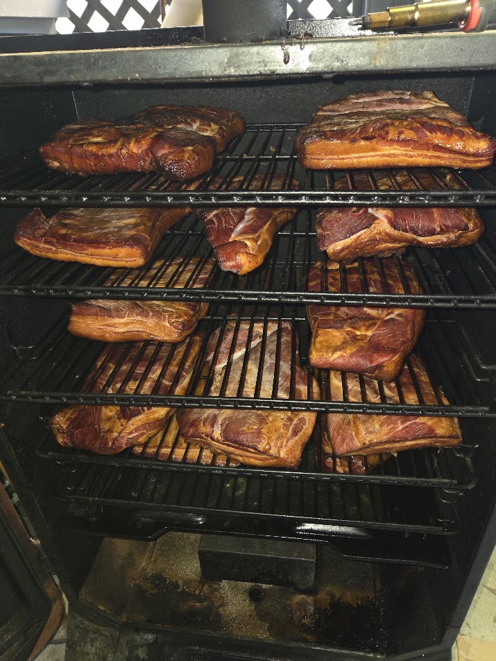Time for the annual Kentucky derby party. This was at about the halfway mark first thing thing morning as I did an overnight cold smoke at 200° then cranked it up to 250 and now just waiting for the 195-203 range.