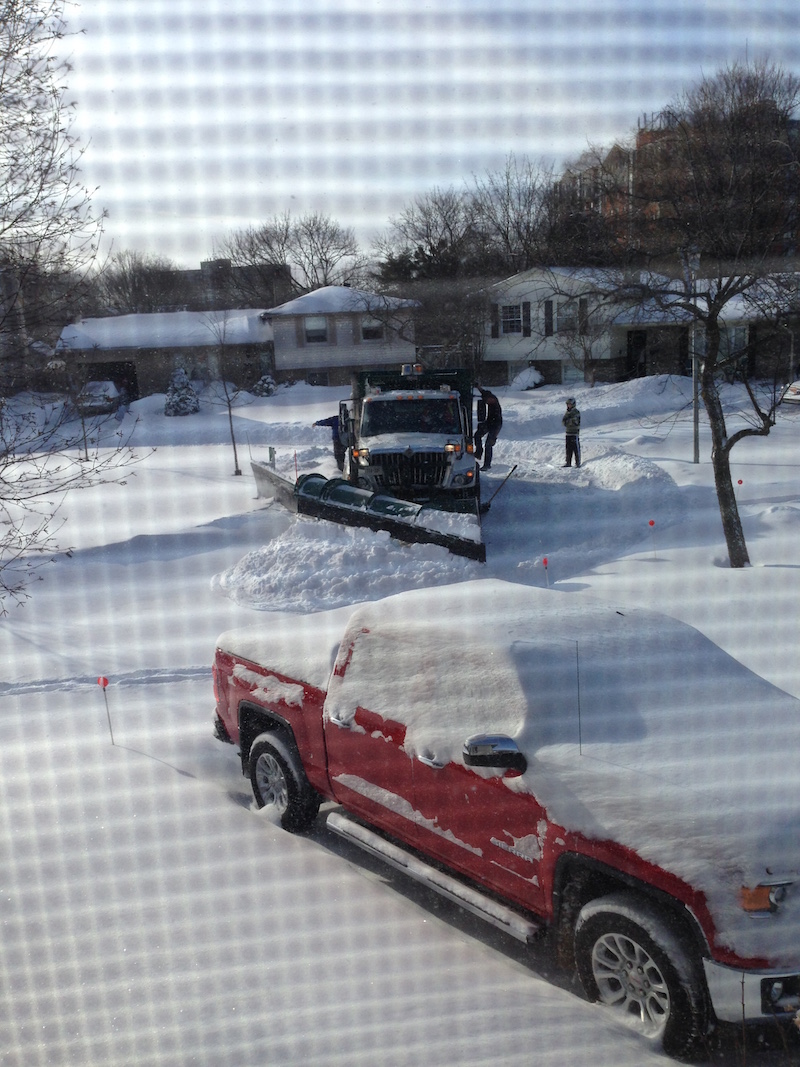 I called my work and two of the nineteen people on my shift made it in. This is the first time I missed work since that 40" overnight drop we got three or four years ago. I cleared the driveway but still can't get off the street. I like how the plough guys are trying to push it into the cul-de-sac instead of the properties in the photo. They could have easily been sadists.