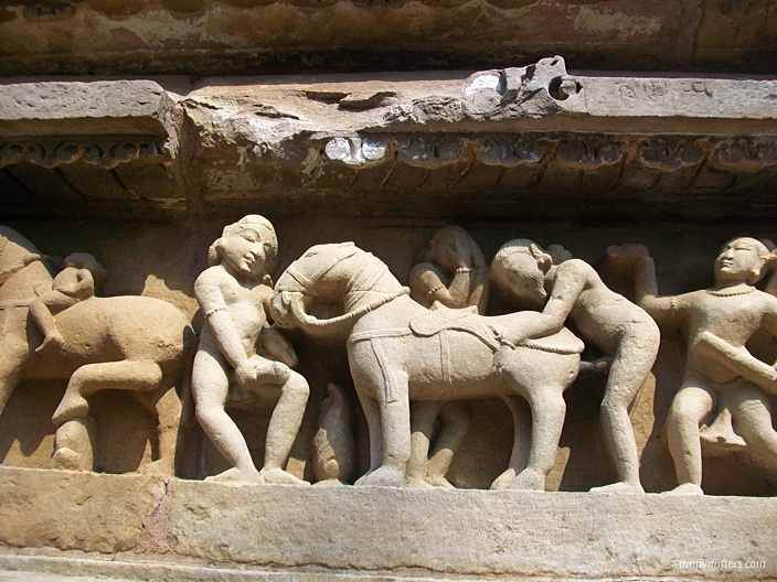 The guy in the front of the horse appears to have an apple-shaped end to his wang. That's going to end badly for him being near that horse's mouth. Maybe that's why the person in the background is covering their eyes.