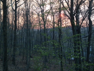 Brush fires burning in Pennsylvania over 30 miles away and we can smell the smoke and its hazy as all hell here. Pictures don't do it justice, except to the say the sun never looks like that here that high in the sky.