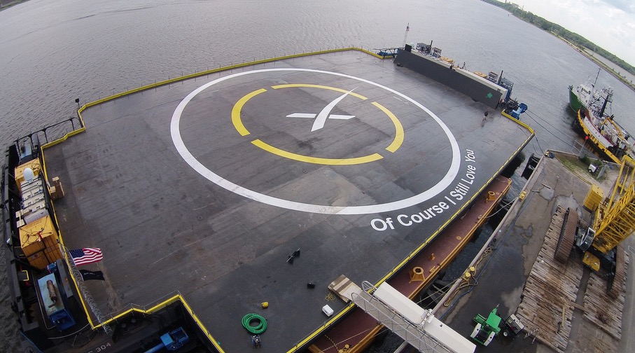 How can you not like SpaceX more and more? This is a pic of their new rocket landing platform that's heading out in a day or so to (hopefully) bring home their latest Falcon 9 delivery rocket. If you're not up on the story, there have been a few "close but no cigar" attempts at landing the rocket rather than just let it sink to the bottom of the ocean. Needless to say that the landing attempt totally fucked up the landing barge.