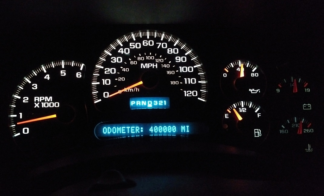 So, two things in that photo - one pointed out by rep. Yes, that right cluster light is burned out. Apparently, that's pretty common with these year models. eBay and other internet biznass dudes will tell you and sell you all kinds of ways to fix this. None of them matter to me, as I can see just fine. Not worth it. But, funny story . . . the original dash cluster had the same issue. Then, my truck got struck by lightning (? -maybe. There was some kind of rando power surge that fried the PCM and BCM and cluster and radio.) So, I replaced it with a new cluster (well, the insurance company did), and all the lights were working. Hooray. Then, about a year ago, that light died again. Alas. The other funny part of the story, was the dealer reset the odometer to match the actual miles on the truck, but did NOT reset the engine hour meter. So, if you divide the miles by the hours, I have averaged 111 mph. Second thing, that temp gauge just started showing hot. It always has run right at the 195 degrees or whatever it should be. Currently trying to diagnose that. It cools back to the middle 210 when I'm moving and only creeps up like in the photo at idle.