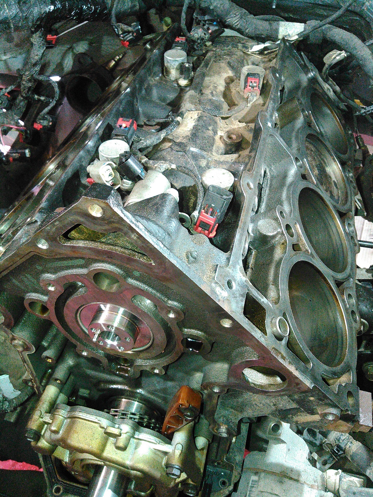 I removed the phaser (cam gear), and the dowel pin was sheared off.