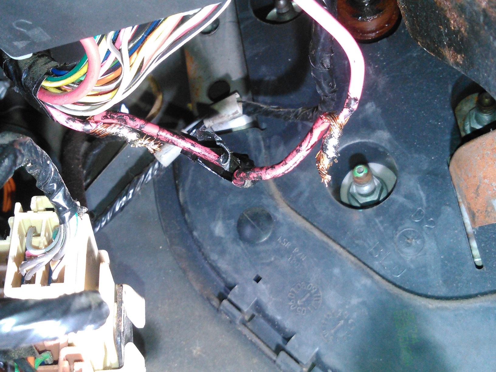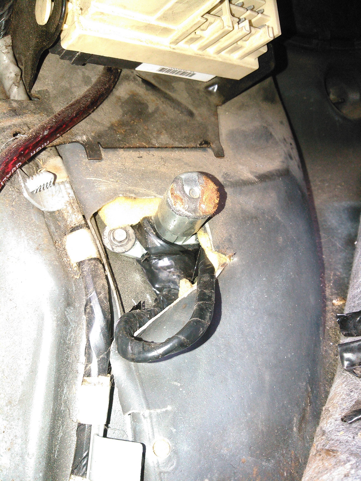 In other news, I was working on a Hummer H2 that had a weird hesitation/ stutter upon acceleration. Then one day I was going to take it for a test drive with the scanner connected, and it died as soon as I put it into gear. There was no power getting to the "key on" circuits/ fuses under the hood. I spent a total of a few hours reading diagrams, checking circuits, bypassing relays... And nothing would make it start. So I went to the ignition switch, started following the pink "key-on" wire, and found this: Spoiler One of those shitty, twisted together, booger-soldered wires had power, and the other one didn't. So I followed them under the carpet, to find this... Spoiler I don't know how much you people know about mid- '00s GM vehicles, but they DO NOT have a floor-mounted dimmer switch. I decided to press it in, and lo and behold, EVERYTHING POWERED UP! It seems that boy-genius installed a kill-switch on his Hummer, and put it in one of the most likely places to accidentally get tripped. This was all completely covered by the carpet, by the way. Spoiler I ripped it all out. Fuck that guy. He's paying for every minute of diagnostic time.