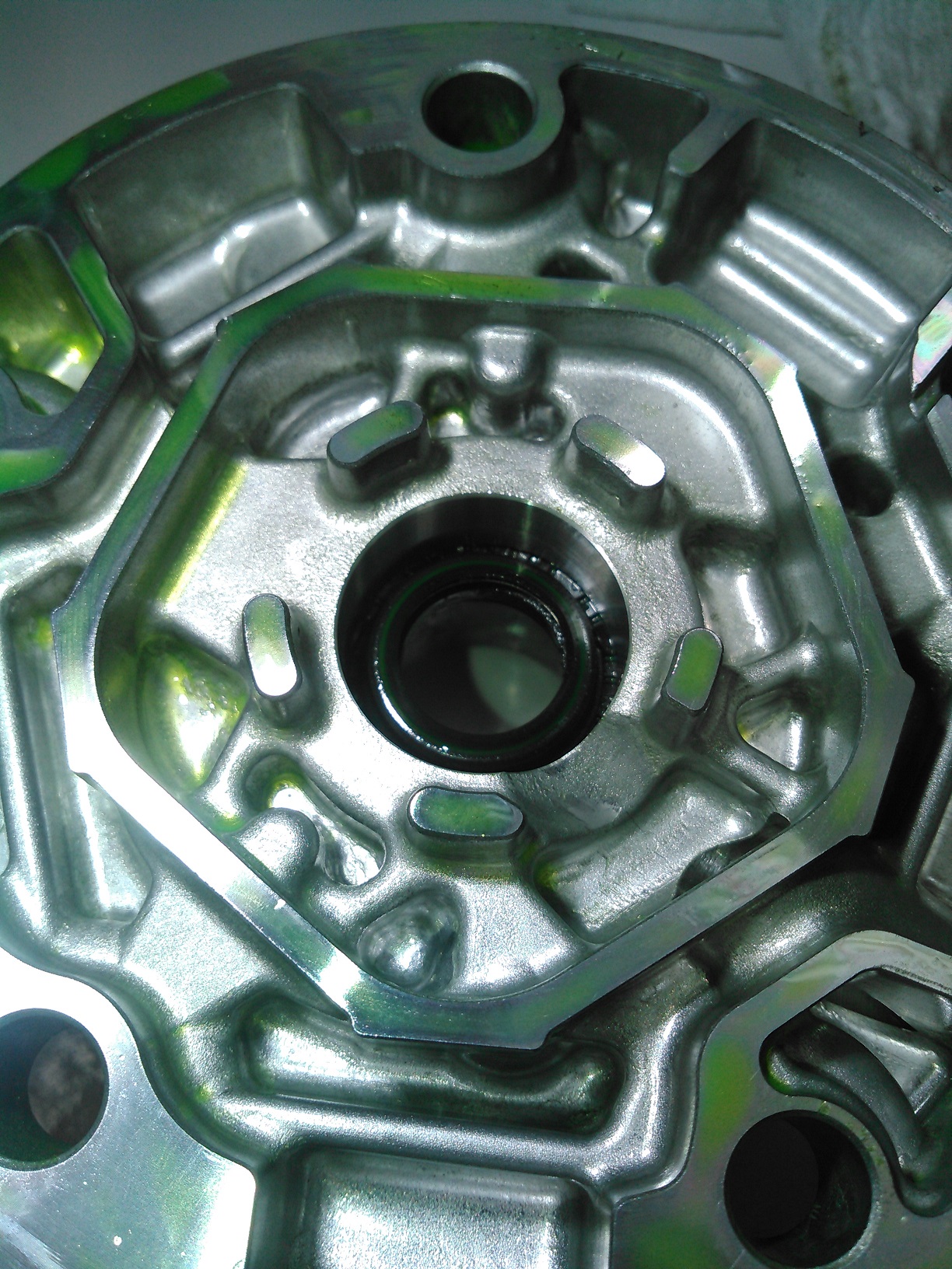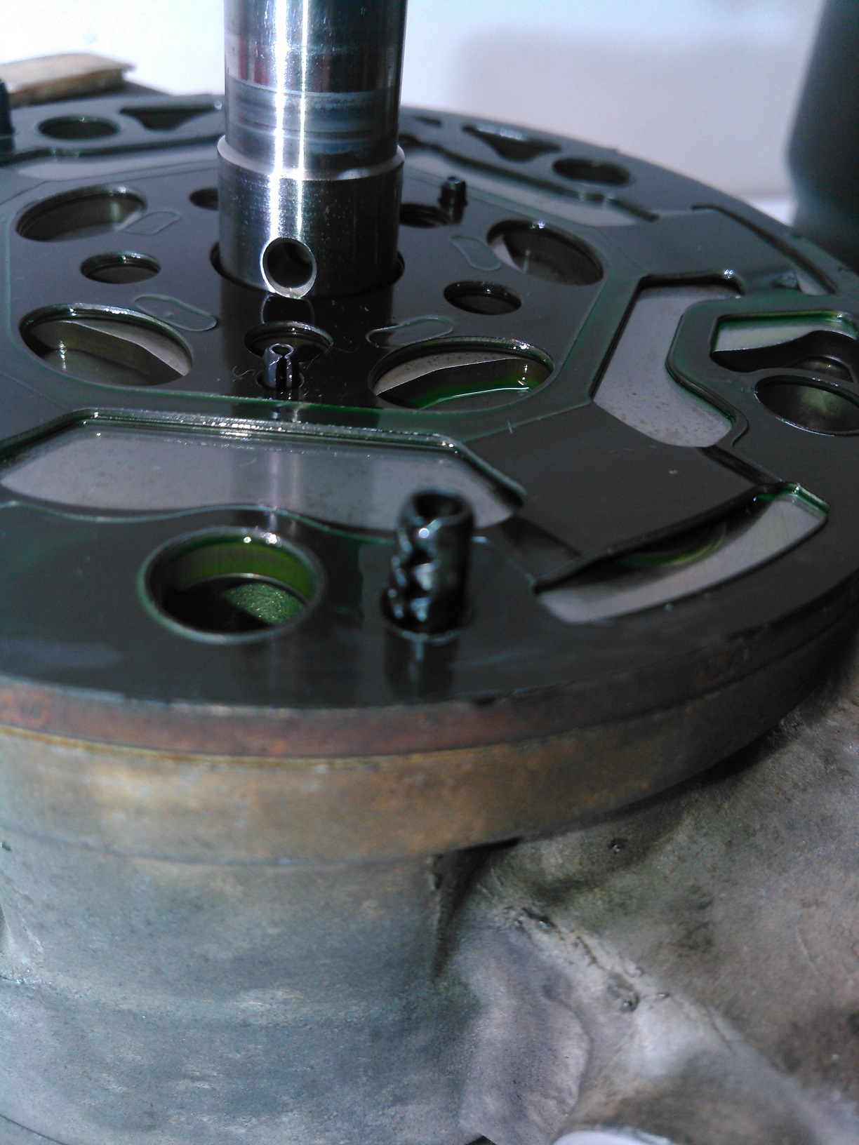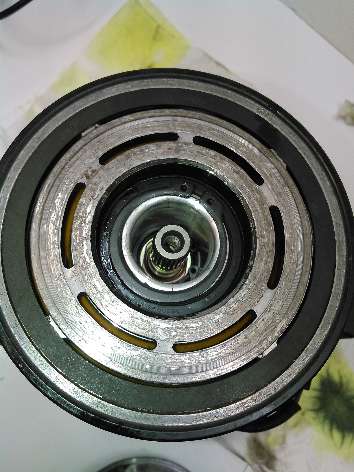 Oh shit! My truck's A/C compressor started leaking! What am I going to do?! I guess I'll have to buy a new/ reman compressor, right? I've got two words for you: 1) FUCK, 2) THAT. I resealed that bitch. Here's how I did it. (I had already started stripping down the compressor before I got the idea of chronicling this, so some of the pictures don't necessarily match up. Got a problem with that? Take it up with my butt, he's the only one who gives a crap.) Spoiler This is the outer part of the A/C clutch removed. You can open the hood of your car to see what it looks like installed. It's held on with one 10mm bolt, and it has shims under it. THESE ARE VERY IMPORTANT, DO NOT LOSE THEM! If you omit these, you could end up with a compressor that will never turn off. Clean them up, and set them aside for later. Spoiler Once you remove the outer part of the clutch, you will be greeted with the inner part, which is retained with a snap ring (shown here already removed). The inner clutch will usually be a minor press-fit, and require a little bit of persuasion/ tapping to be removed. Spoiler Once that is out of the way, the next thing is the field-coil, the electromagnet that clamps the two clutch-halves together. You could technically leave this in place to do this job, but I removed it anyway to clean it. The plastic cone you see is the installation tool to keep from tearing the new seal. This picture was taken AFTER everything was assembled. You do not put it on before. Spoiler With the field coil removed, we can now see the leak point: The input shaft seal. Spoiler Here's what the compressor looks like, with the clutch assembly removed. Next step is to clean it up. More to come; don't post anything yet.
