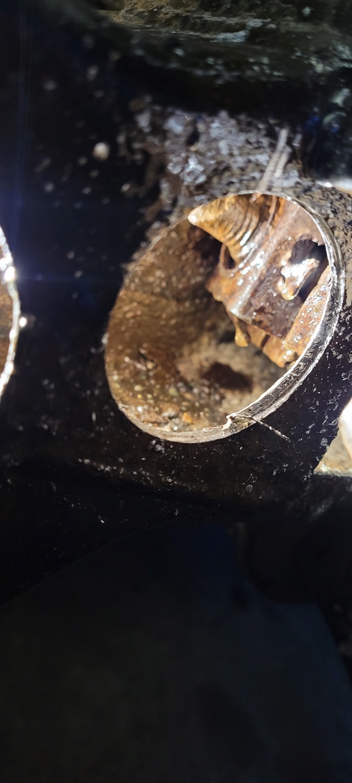 Sorry for the shitty quality. But I borrowed an inspection camera. That is what looks like a shield around the nut. Which kind of makes sense to what I was feeling yesterday. I could barely get a finger in there and spin it with the other hand but I could only feel the bolt turn and not the nut