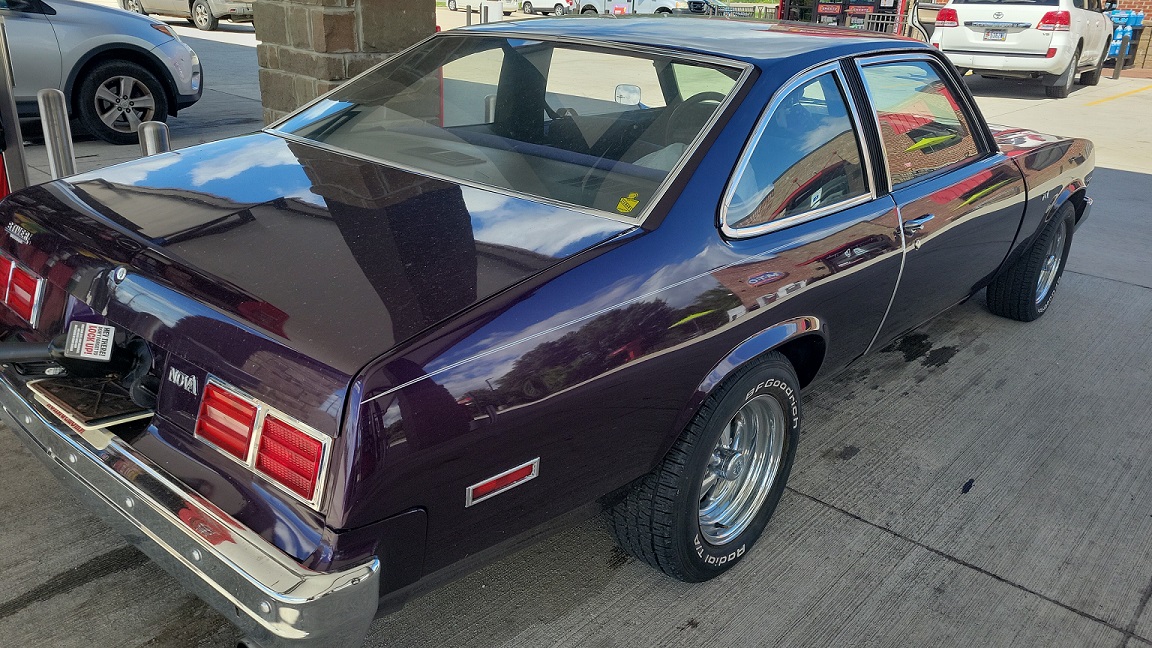 A ‘76 Nova was the first new car my parents ever bought. Back in the mid 80s I could hardly believe that people would put striping down the hood and jack up the rears of cars like my sister and I would sleep in the back of with no seatbelt while mom and dad smoked like chimneys with the windows closed. It was crazy how fast normal everyday family cars were. My parents had a’72 Chevelle that had a 307 engine in and was fast as balls. That thing would fly as soon as you hit the gas.