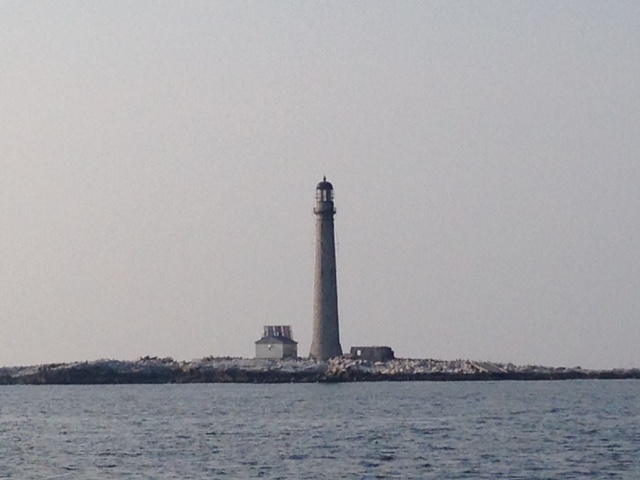 So after my wife's family reunion at the largest VFW in the US we went up to Maine to check it out and did some fishing out of York beach. My brother in law and I took his kids with us and we woke them up early to get on the Nordeste from G-Cove Charters. As you can see I am a bad influence on her, she has learned the fisherman's salute and her mother was not amused, I was. We ran out about 26 miles for some ground fish and we were not disappointed. Sea Pollack, Cod fish (all released), Hake, dog fish, mackerel ,Haddock and almost a blue shark. My niece stuck the biggest fish of the day with a 19 pound sea Pollack, we had over 100 fish for the day with most being released but we went home with 50 pounds of filets . We fished in 200 feet of water with a chrome jig and teaser about 2 feet up on the line which gave us lots of doubles. Very cool spot to fish with tons of whales around. This lighthouse is 15 miles offshore, the captain said there were a lot of ship wrecks around it prior to the lighthouse being there. No shit.