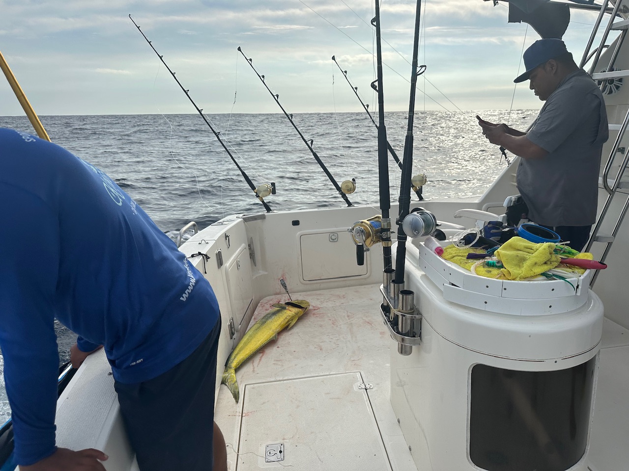 How bout fresh ON the boat mahi. Less than 15 minutes from the sea to the pan, a delicious breakfast just after sunrise. Reeled in by hand on a Cuban yoyo, no rod and reel.