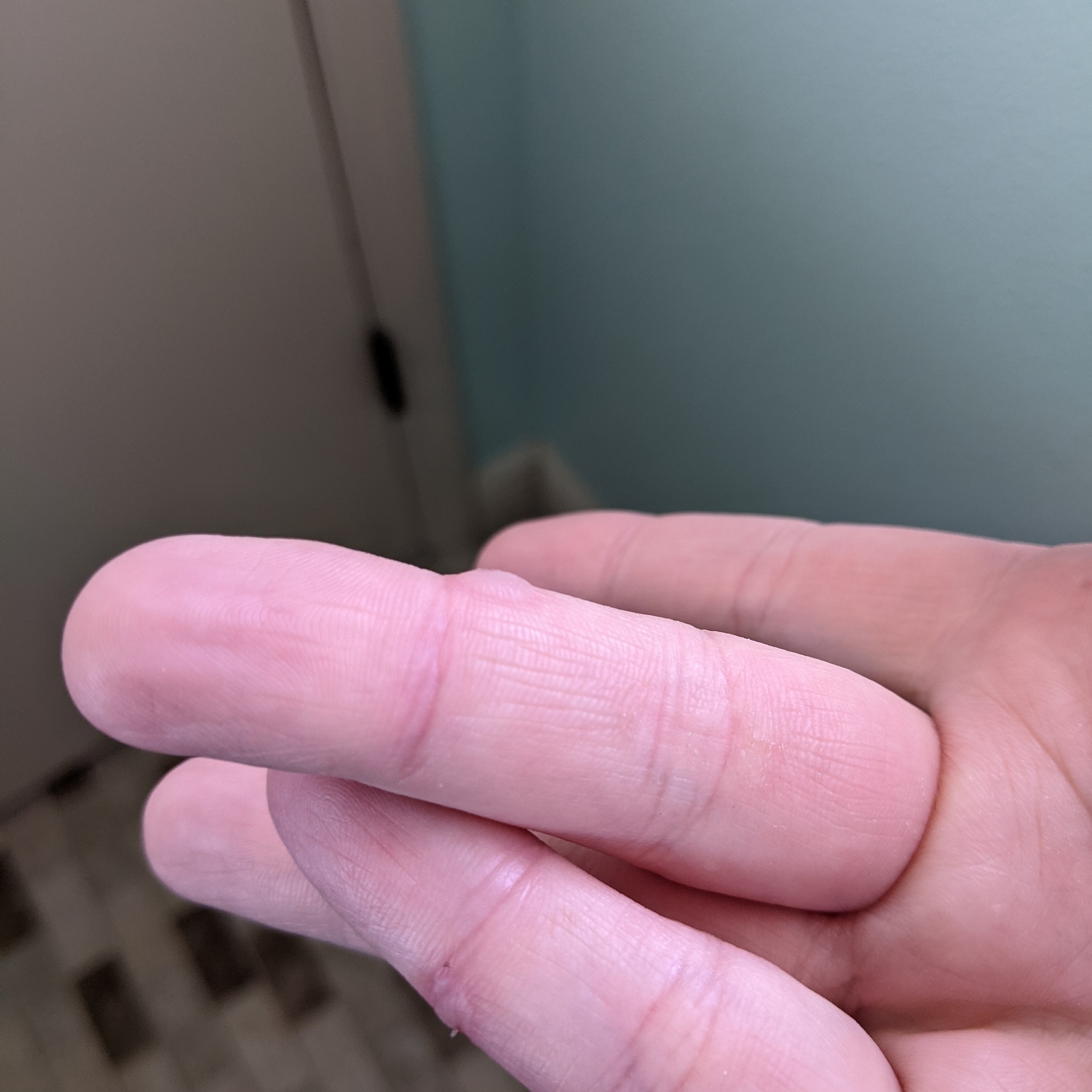 Blisters. You gotta get the twine really tight. I really want to pop the big one.